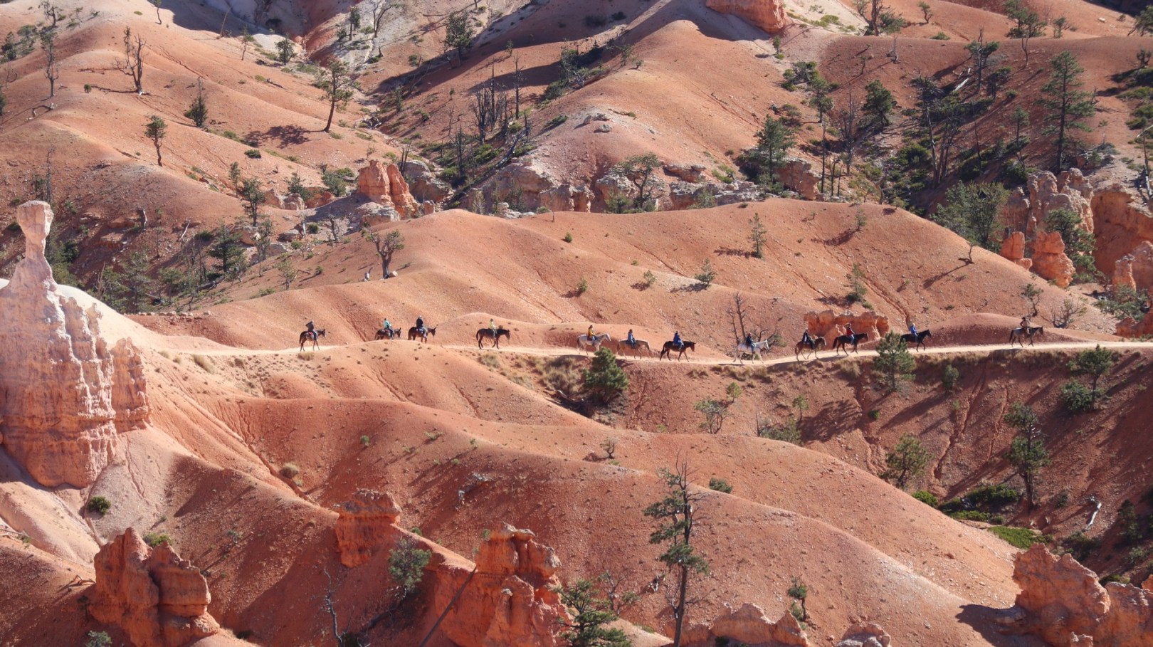 Free toast and coffee for breakfast generate some extra flow in the grocery store linked to the Inn and also some extra turnover as all extra’s are to be paid for. I briefly meet Inge who is tandem biking with Peter, a loop in West USA. As yesterday was longer we only had a very short bike day to Bryce and have time to do a hike at Mossy Canyon where we meet Inge and Peter again.