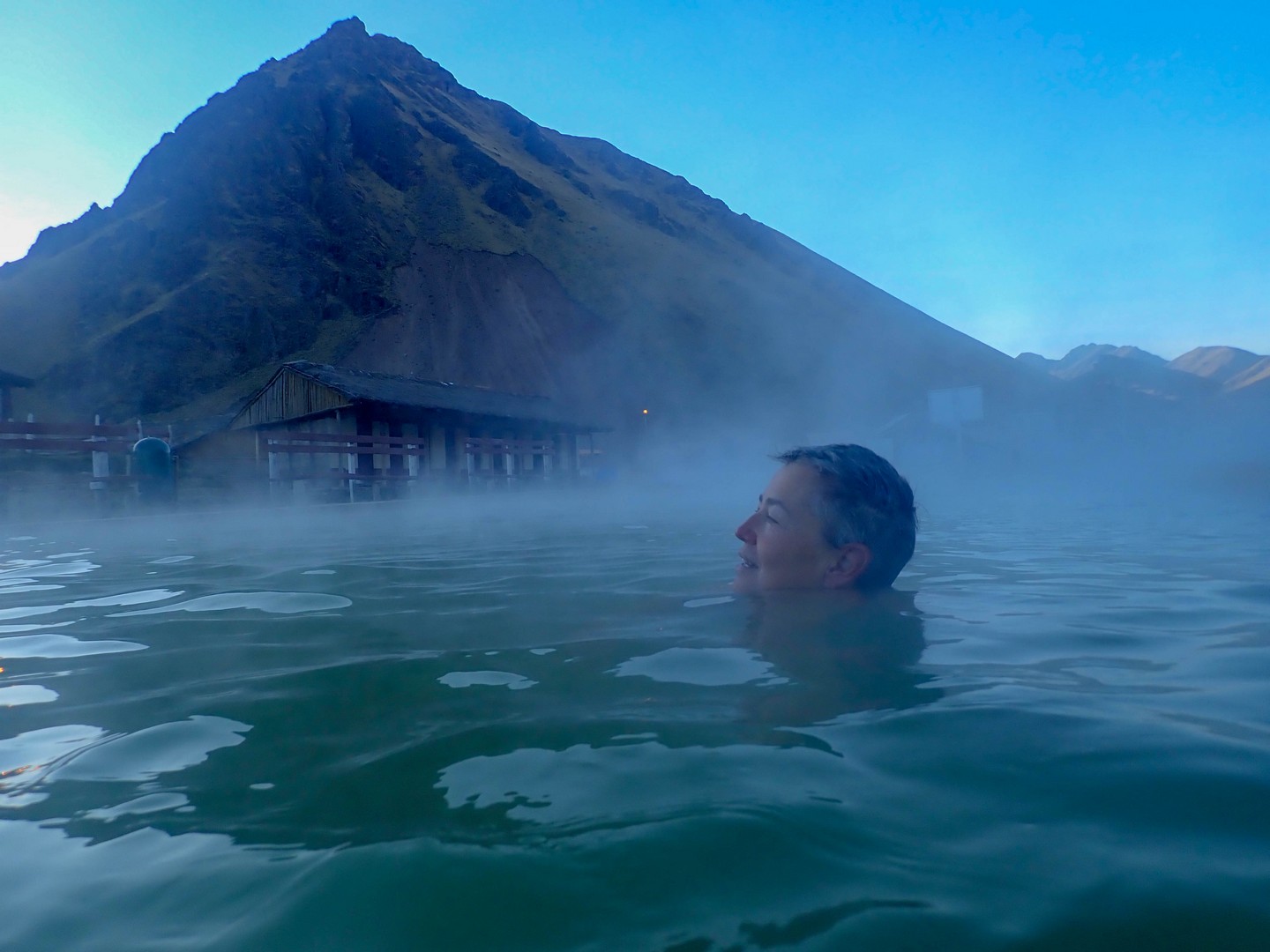 The complex has started a well needed renovation and the top floor of the hostal has rooms with new mattresses. We did agree some time ago that if the conditions are not warm and there is sheltered possibility we will go for this. As it is freezing we decide to not take a dip in the hot pools. Next day before breakfast we can’t resist and enjoy really warm steaming pools followed by a fresh cold water shower. If this could only be the start of every day.
