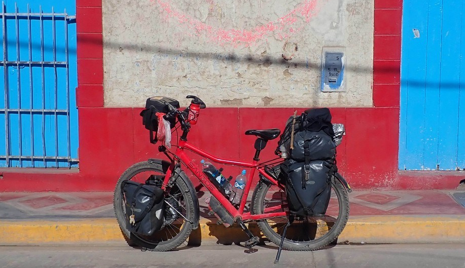 Town is one concrete jungle with almost no green and only dust and pollution. We bike first to the casa the cyclistas to hand-over the key. At the square we already meet the owner Geovanni who says to just enter the building. Big house with a small garden. The concept is that you pay  for what you get when you stay ‘for free’ at the casa (house). This means that Geovanni offers his place to cyclists. Some will give 20 soles, some will give less. So you can imagine he does not have a lot of money to invest in improvements. It is a basic stay. As there is already a Mexican, 2 people from Argentina and a Polish couple the only possibility is to share a room (with nothing in it) with the Mexican guy. Shared facilities outside. As much as we would have loved to chat with the other bikers we kindly decline and look for a room with own bathroom and hot shower and a decent bed.