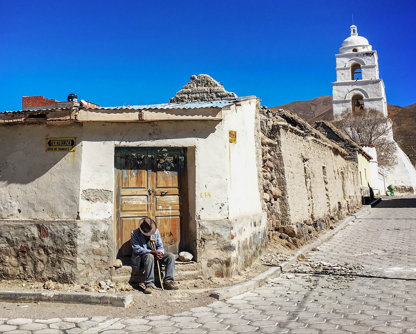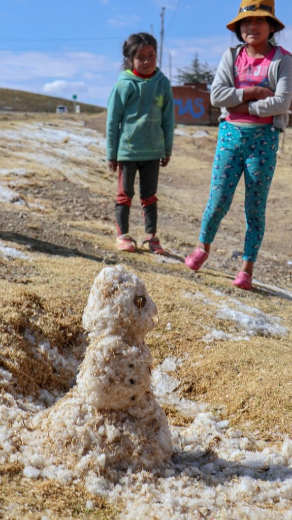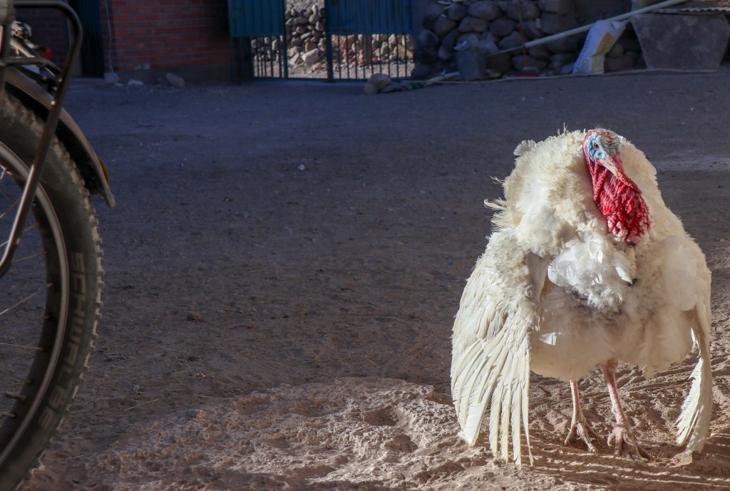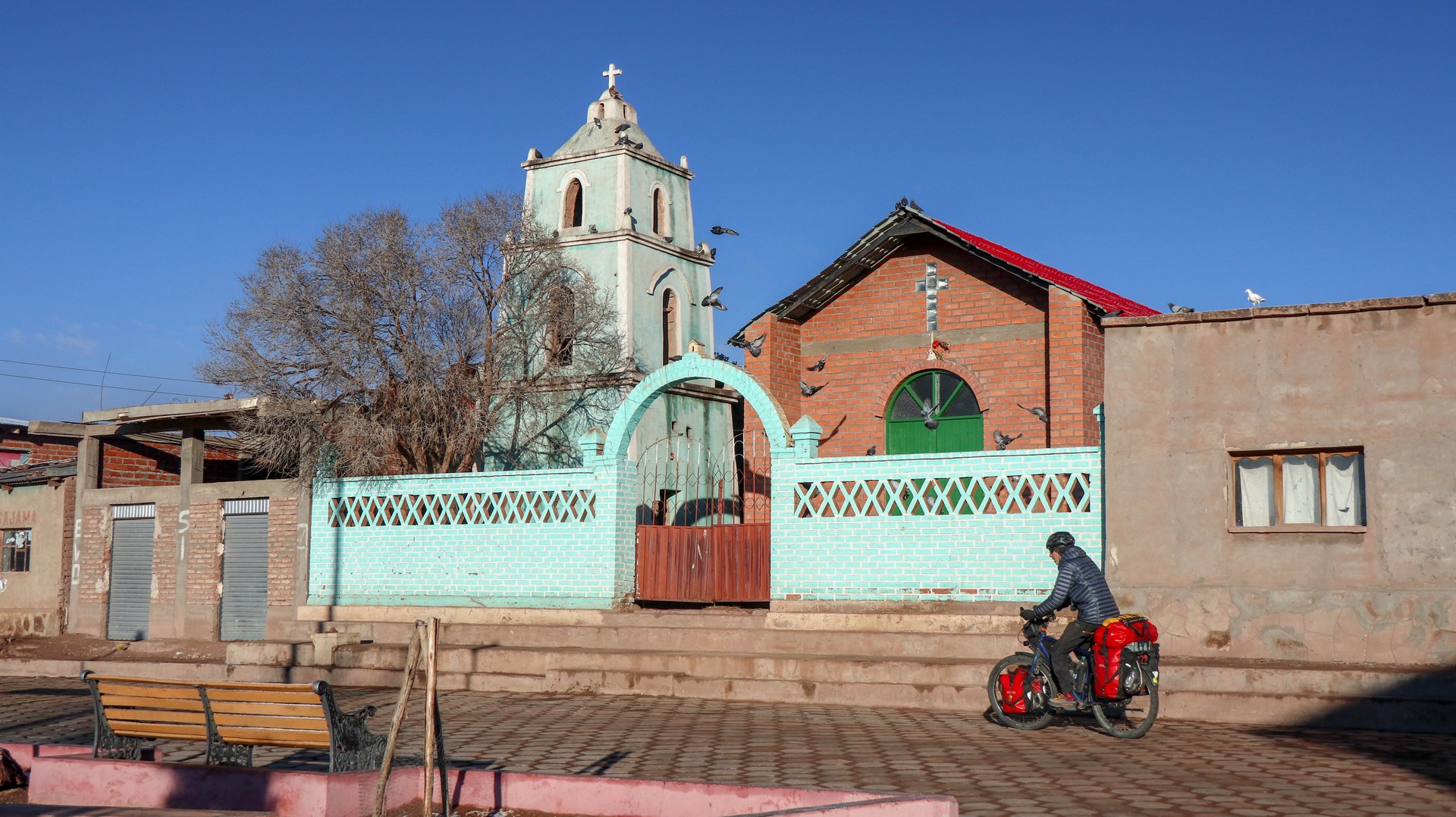 After a meager 47 km but as it is already 15:00, we decide we need to have a look if the village of Toledo can offer us any shelter. We are both tired of the fierce headwind. Lucky us they opened a hostal only a few months ago. 4 walls and a matrimonial is all we need. No windows but at least shelter from the wind and the cold. We have time to walk through the village (the square), chat a bit with people, find some cheese and bread for tomorrow and eat street food: lama with baked potatoes. Not bad. An old lady tries to teach us Quechua, but a big quantity of coca leaves in her mouth and her limited command of Spanish make it hard to understand her. People in Bolivia are more closed than in Peru but once you start a conversation they are very open and welcoming.