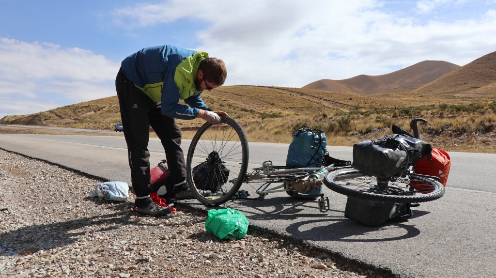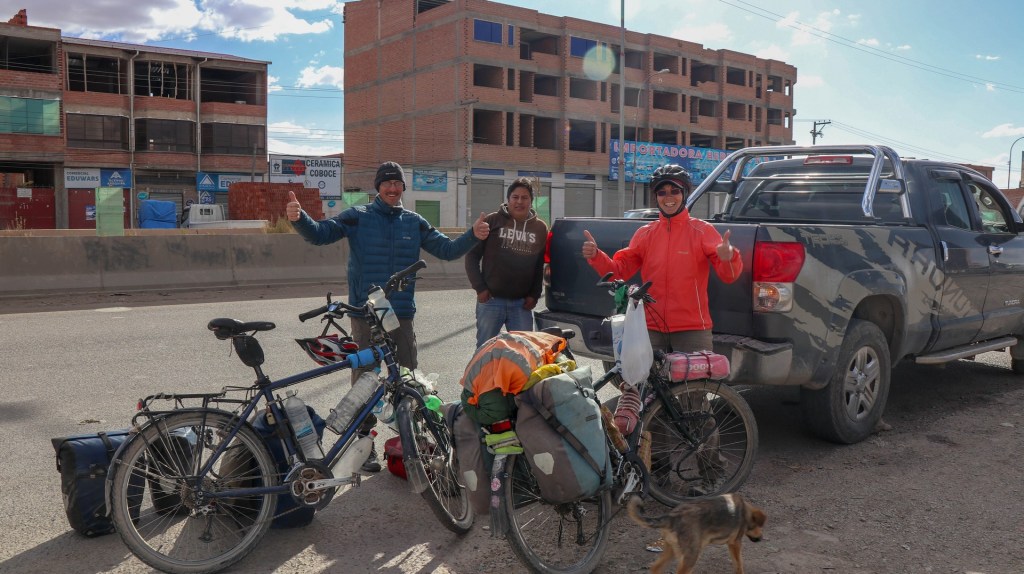 Sunday is a late start as we enjoy having breakfast with Nils & Jochen. Finding a working ATM and some bread adds more time to the late start. We cover almost 10 km before we have left the dusty, industrial city of Oruro.