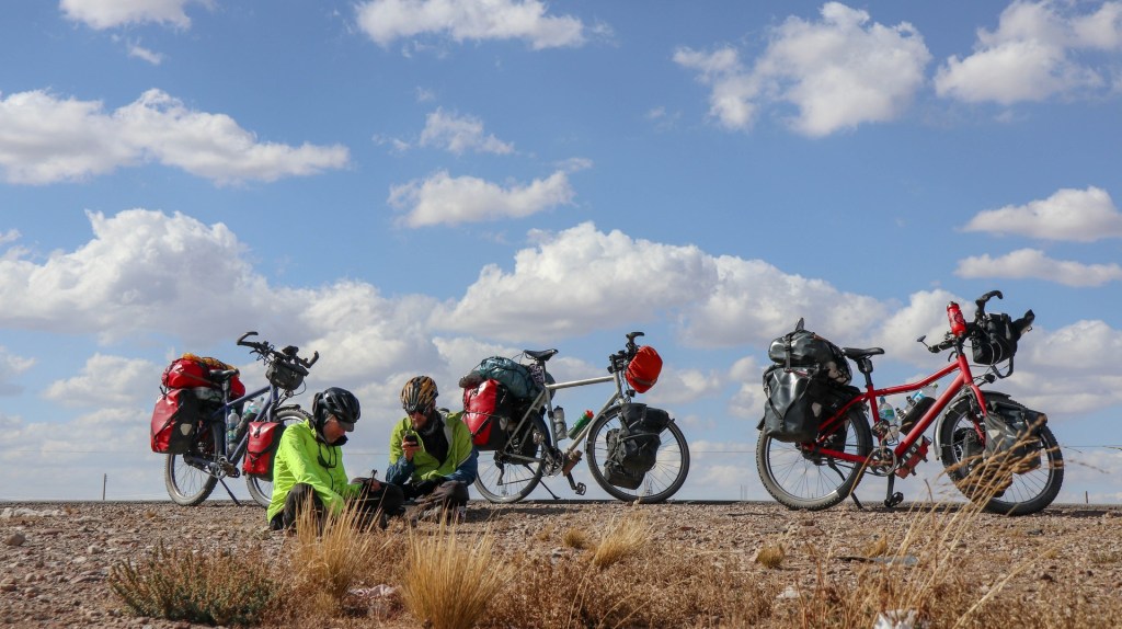 Still doubting which route to take. We know we will not bike to Mendoza as this is where all the tours go. I wanted to bike through part of the lake but the more kilometers we cover the more we discover we won’t be able to set a speed record. Each kilometer the surface changes and most of it is very rocky and slow. On the Salar there are “roads”, tracks which are used by cars and buses, which are also marked on Google Maps or MapOut, little did we know there was a reason for those roads…