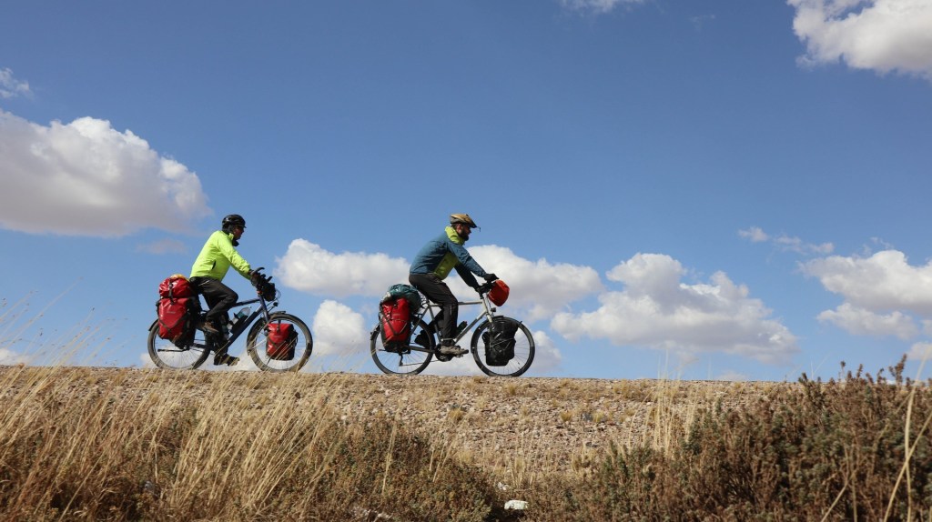 Early night as we leave very early next morning . Just when the sun is peaking over the horizon we are ready to take off. Getting up at 5:30 gets rewarded with a windless start of the day. Plains make place for the foothills of mountains. Wind is in our favor today and when the sky turns grey we are happy to ride to the only blue spot in the distance.