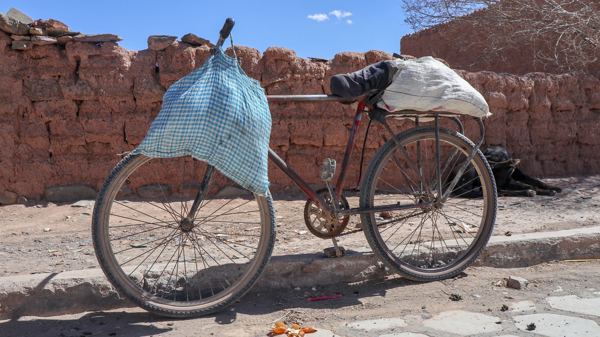 The blue sky only lasted for an hour. What lasted much longer were our cold feet. Luckily our hands are reasonable warm, two pair of gloves, one I crocheted myself as we could not find mittens. When the dark sky is not only a treat but also starts to shed it’s snow-load, the headwind is so fierce we almost don’t move forward, we decide to hitchhike for the final 35 km of the 80 km we want to cover today (next village and shelter). We find a spot where cars can stop but this time our luck is not with us. Several empty pickups pass-by, leaving us standing in the howling wind. Finally Simeon stops and is glad to take us to Sabaya. Did he stop because he knows German and English, because he studied and worked in Berlin? Because he traveled in Europe? Happy we put our pride aside and asked for help. It becomes a real sand storm with less than 50 meters of visibility. Wind blowing from the right, wondering how we would have been able to keep the bikes upright. He leaves us in the center of town where we can’t persuade him to share lunch. Simeon, thank you again for saving us from the storm!