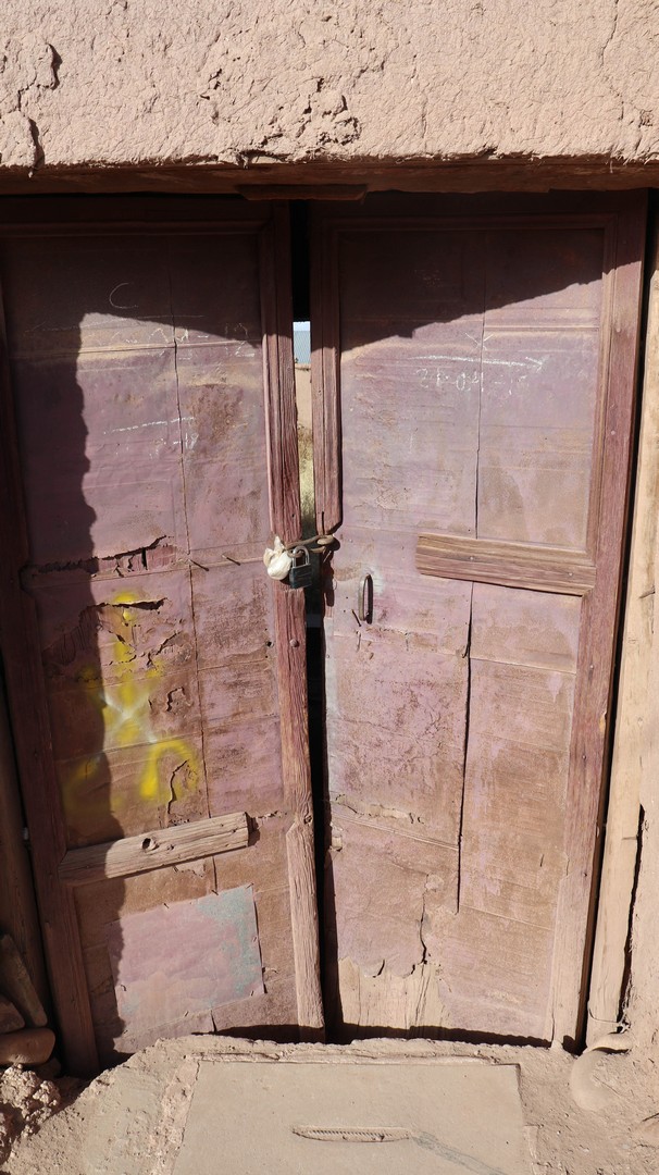 Fun to be on gravel within 5 minutes after leaving the village of Sabaya. Lama traffic jam, beautiful sandy road, desolated villages built from earth. Sand slowly being covered by the first thin layer of salt. Impressed by the vastness of the space.