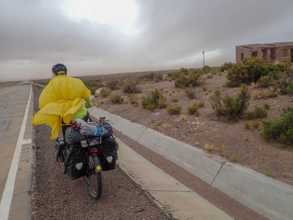 When everything turns grey and yellow and you see it is raining in the distance we know we need to put on our rain gear. We make it to Opoqueri in dust clouds, wind is picking up fiercely. By the way, the nice push we had in the morning turned into a 70% head wind during the afternoon.