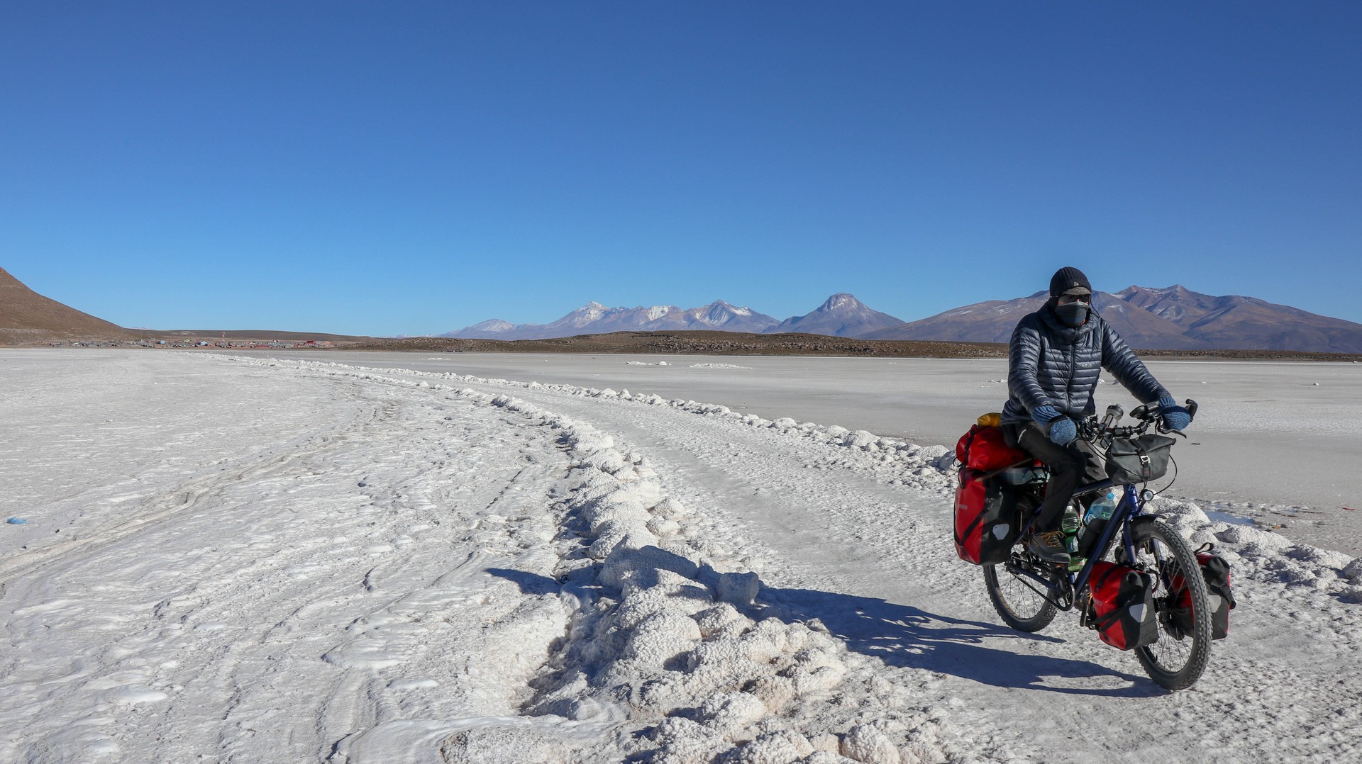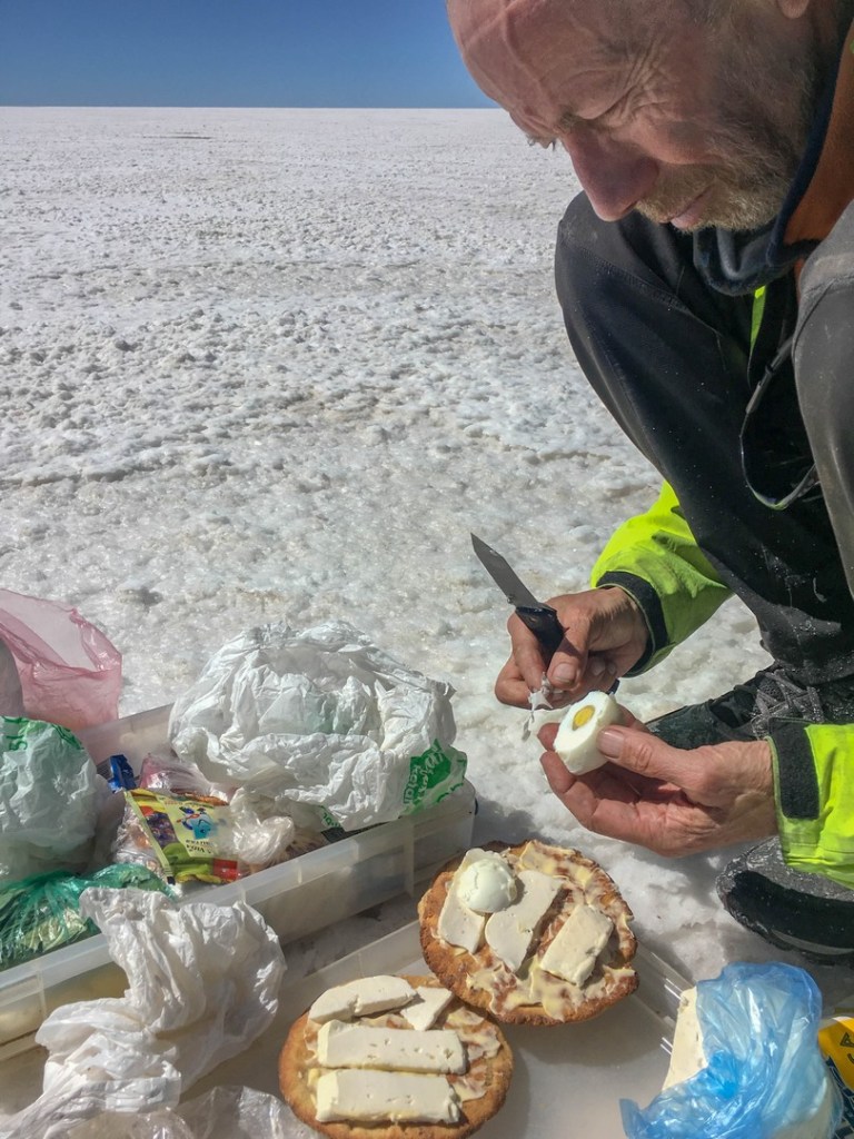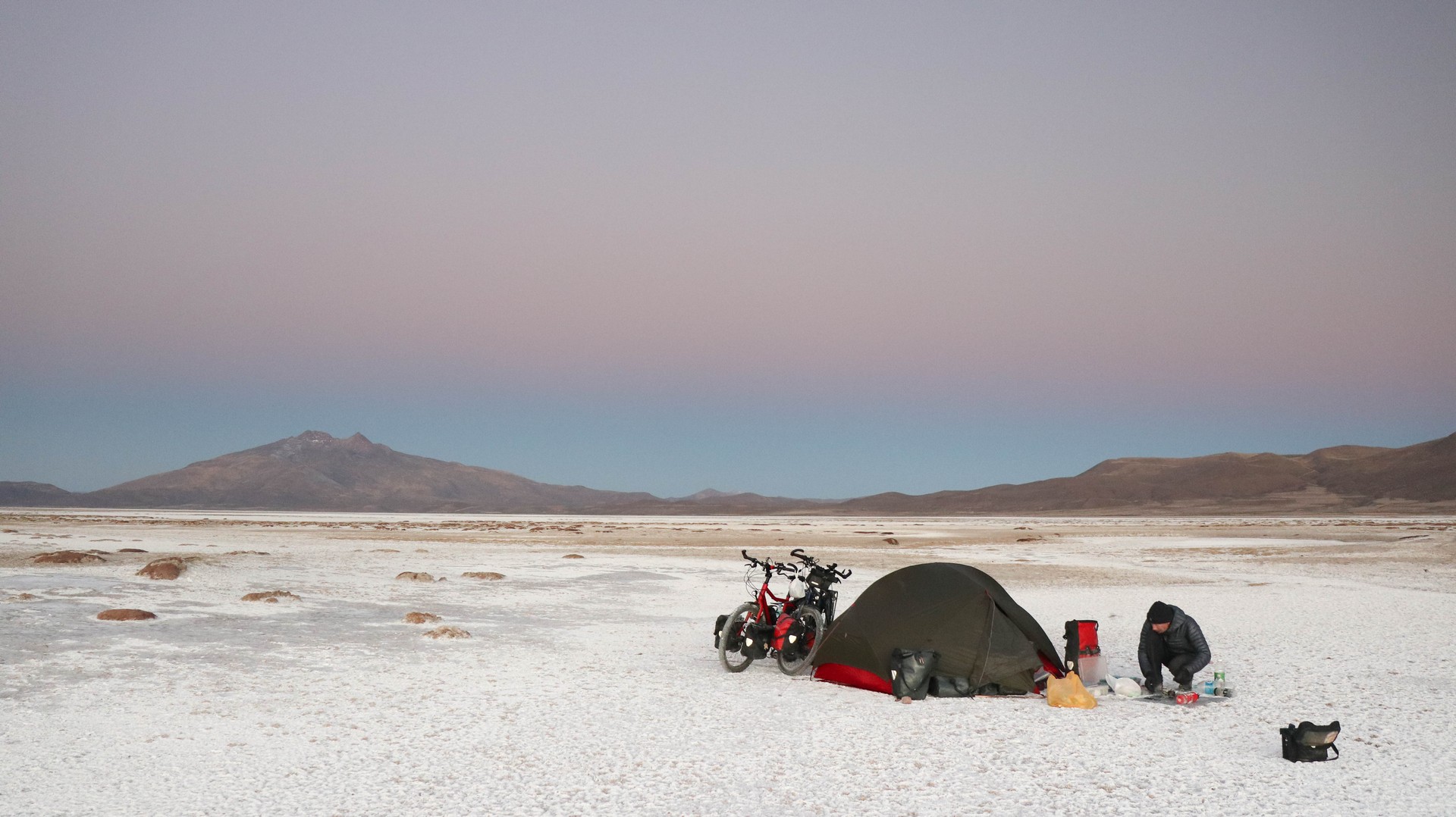 Het moet fantastisch geweest zijn, wakker worden op die zoutvlakte terwijl de zon op kwam, controlerend dat het water niet bevroren was. Prachtig! Veel plezier weer on route.