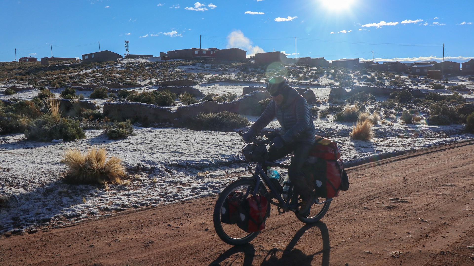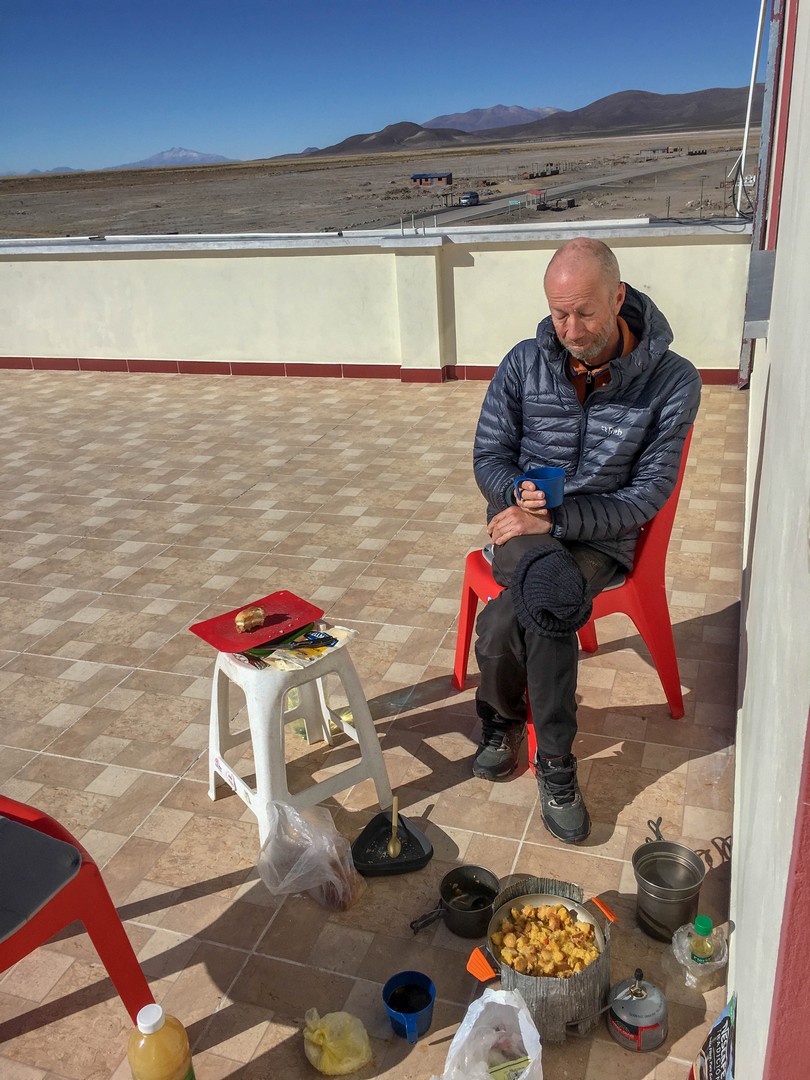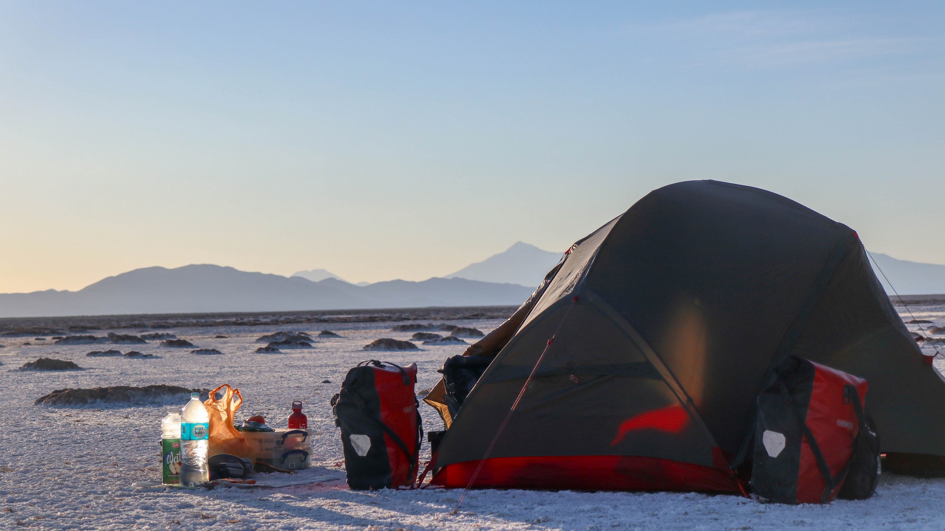 Het moet fantastisch geweest zijn, wakker worden op die zoutvlakte terwijl de zon op kwam, controlerend dat het water niet bevroren was. Prachtig! Veel plezier weer on route.