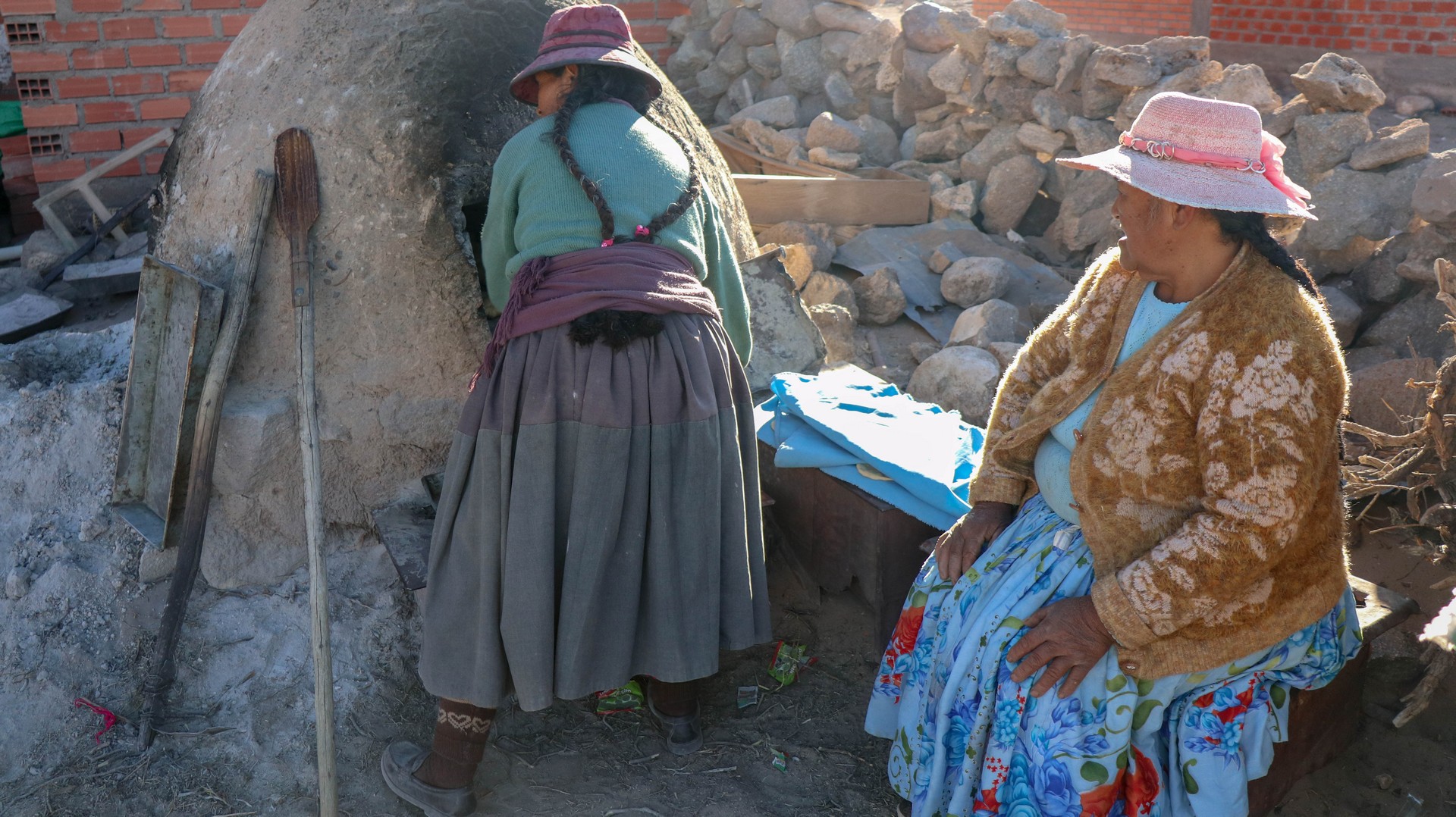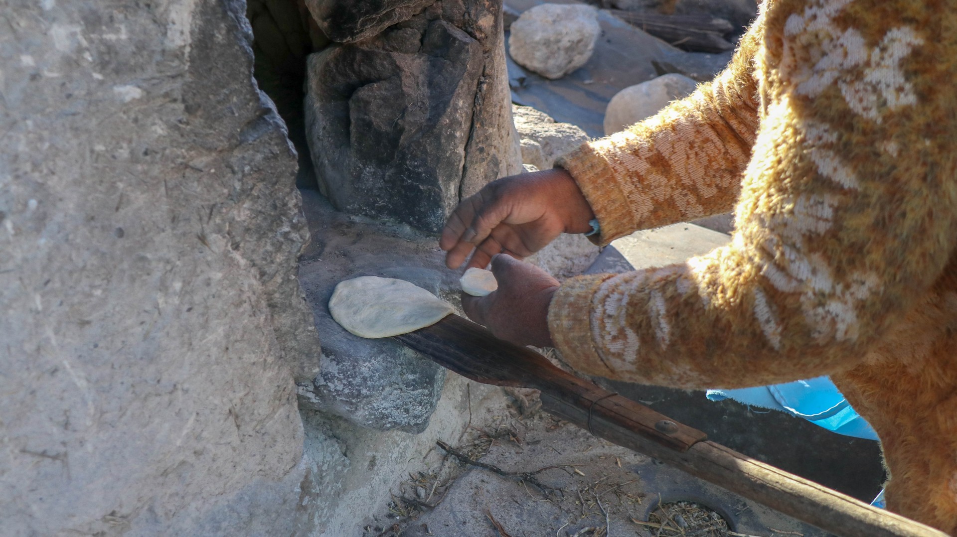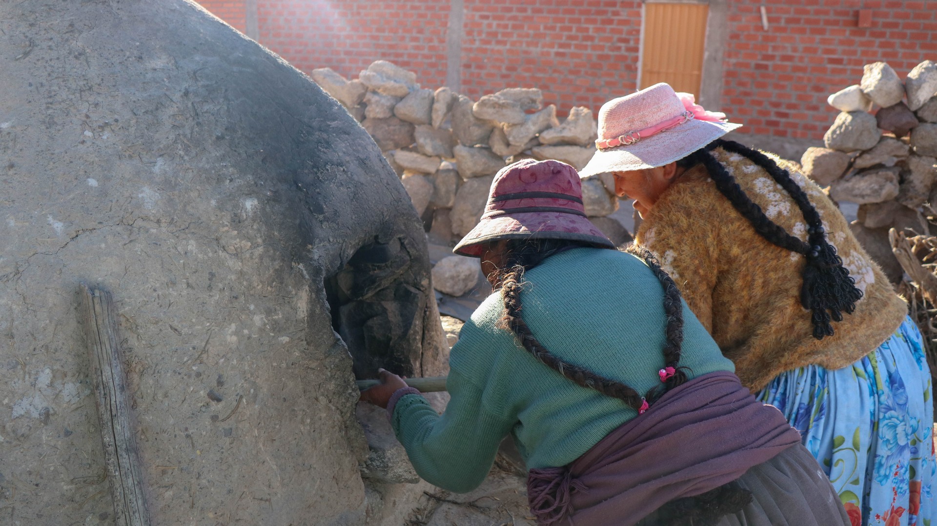Just in time to follow our landlady to where she is backing her quinoa bread and where the small breads of the village are baked. The oven needs to be heated for 30 min by wood (almost no wood in the whole area!) hereafter they can bake 250 small pita look-a-like breads. They sell 8 pieces of bread for 10 BOB (1.20 Euro). Best ever bread I have had, still warm from the oven! Dinner we cook in the room (on our gasoline stove).