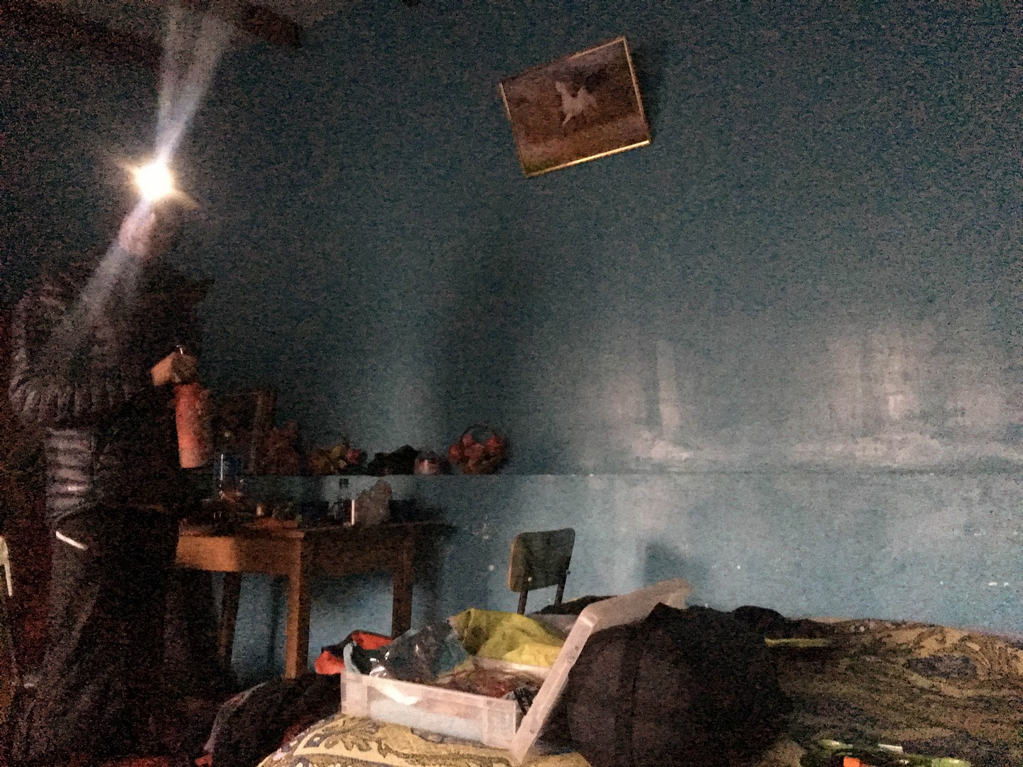 We check all the possibilities to find a sturdy place to sleep while the storm is getting stronger and stronger and the roof is lifted off a house nearby. Finally we opt for the hotel just outside town. Film on Instagram from just outside of the hotel. The storm caused a power cut in the whole village. Cozy evening with candle light. Just you know they don’t have any heating anywhere, even when it is freezing.