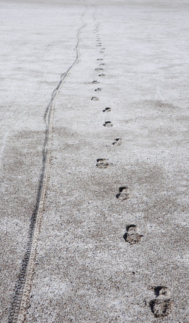 Had we known that the outskirts of the lake, the direction where we were heading, had only a very thin layer of salt on top of a ticker layer of loose muddy sand. Even Frank had to push.