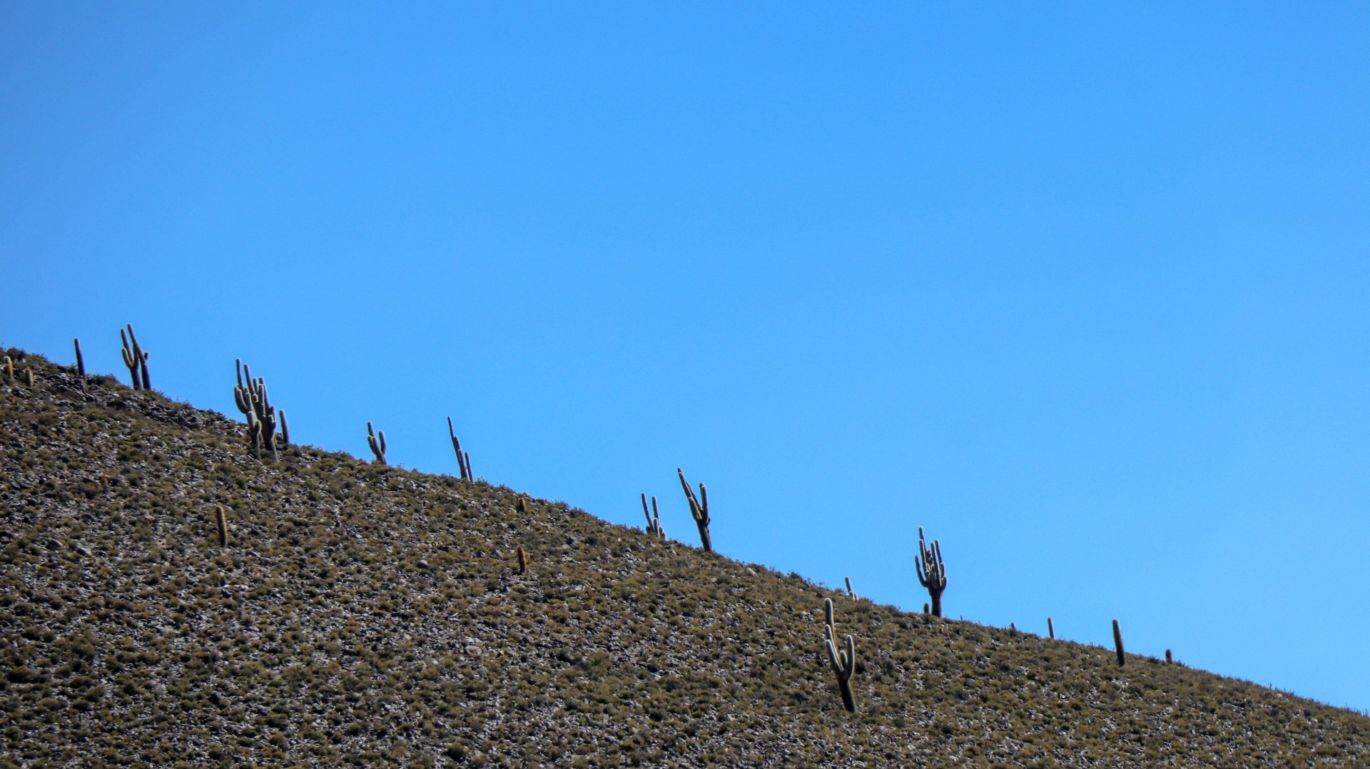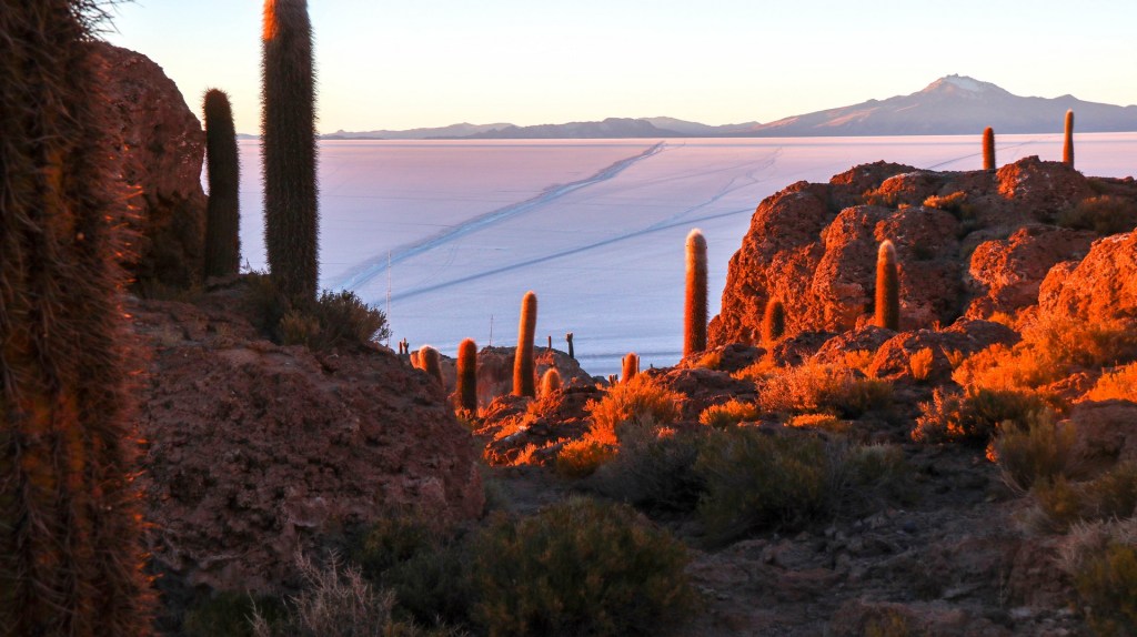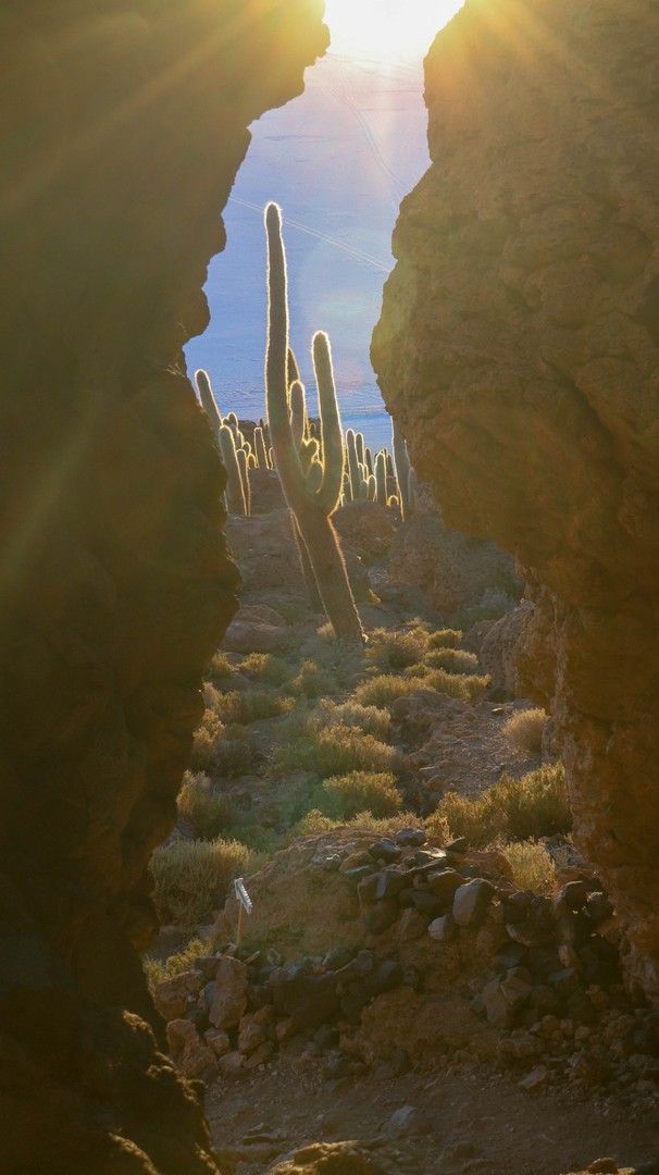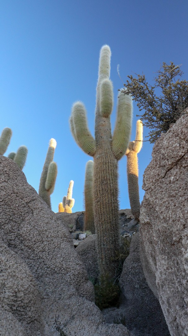 We reach it just an hour before sunset and see the last groups of tourists leave. Seems that between 500-1000 people per day visit this tiny island. Don’t know if we would have aimed to sleep here if we would have know this. Still, walking between the thousands of cacti, Trichocereus pasacana, some of them taller than 12 meters, reaching up to 18 meters is mind blowing.