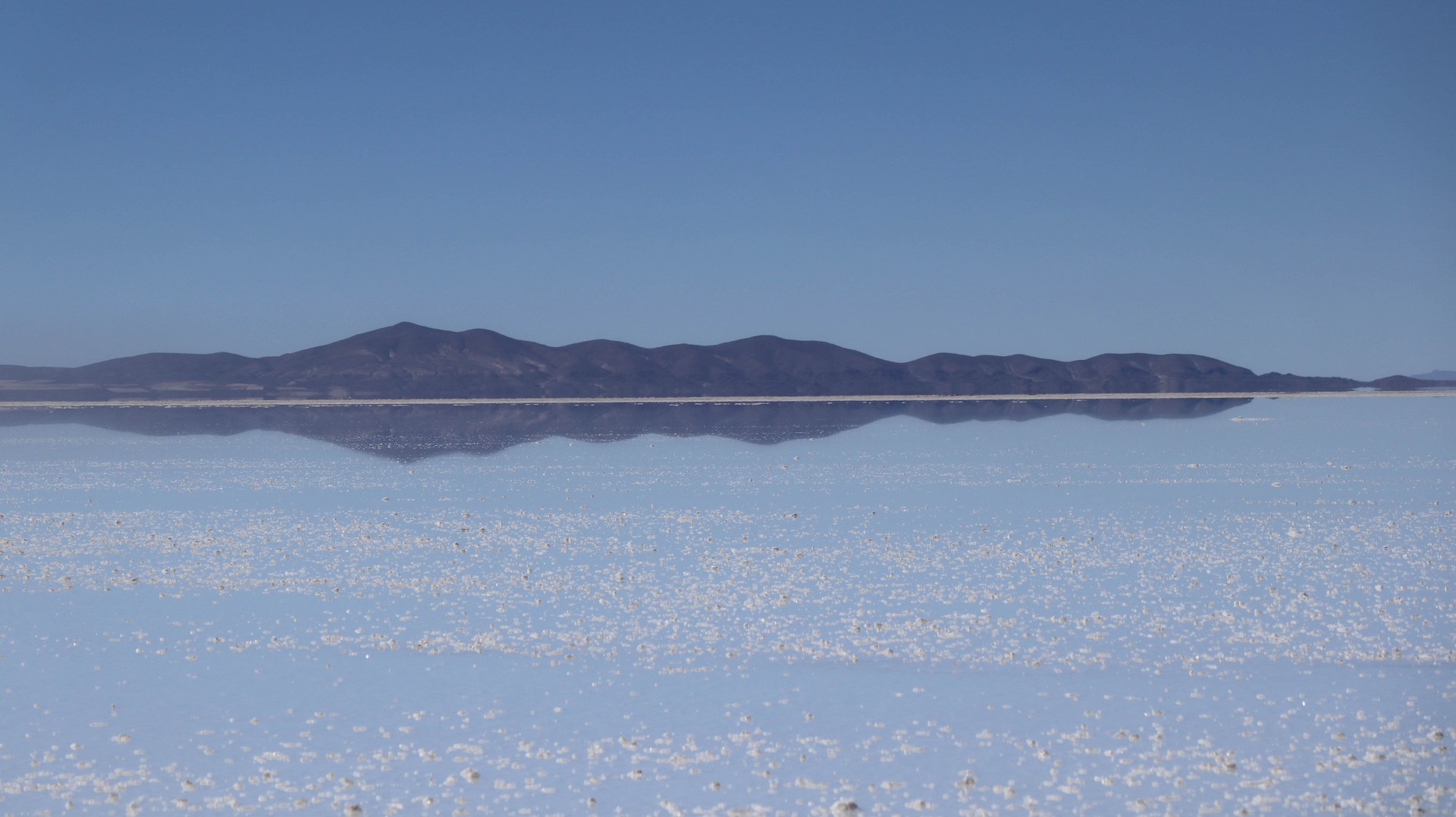The Salar was formed as a result of transformations between several prehistoric lakes. It is covered by a few meters of salt crust, which has an extraordinary flatness with the average elevation variations within one meter over the entire area of the Salar. The crust serves as a source of salt and covers a pool of brine, which is exceptionally rich in lithium. It contains 50% to 70% of the world’s known lithium reserves.[3] The large area, clear skies, and exceptional flatness of the surface make the Salar an ideal object for calibrating the altimeters of Earth observation satellites.[4][5][6][7][8] Following rain, a thin layer of dead calm water transforms the flat into the world’s largest mirror, 129 kilometres (80 miles) across.