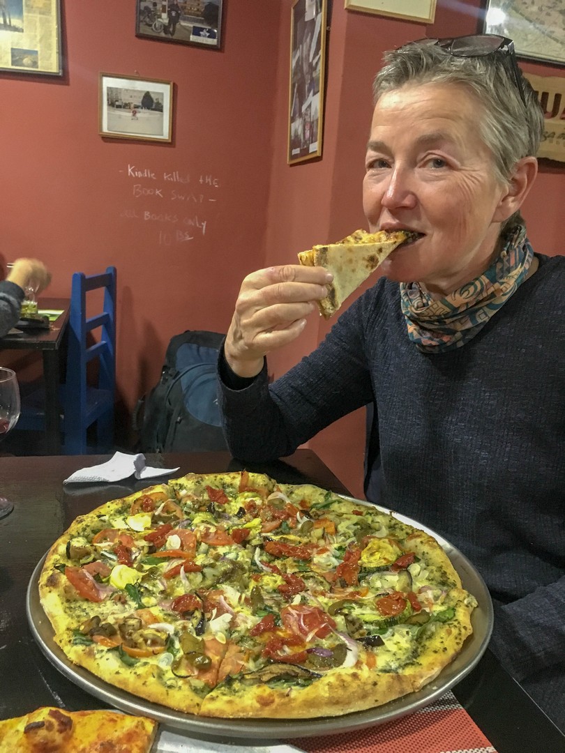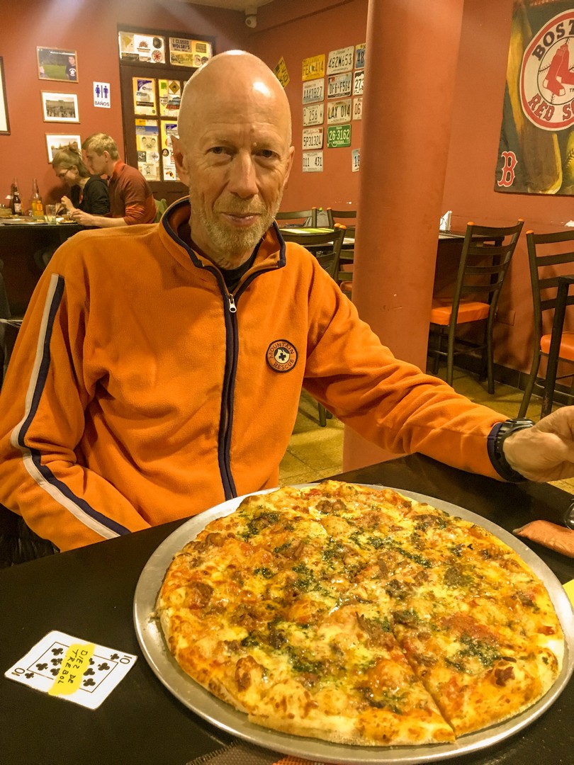 Evening we hike to the best pizzeria in hostal/resto “Minute Man” which meets our expectations. Setting looks like a tourist trap but pizza thin and crusty with just enough topping. Wolfing down two large pizzas.