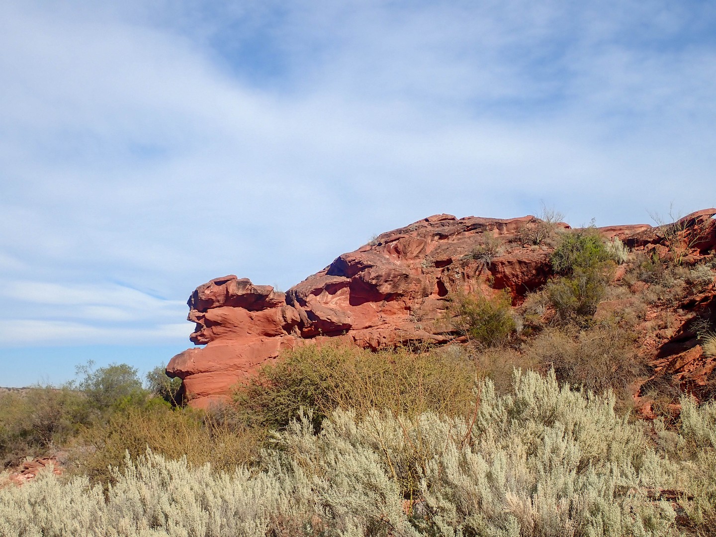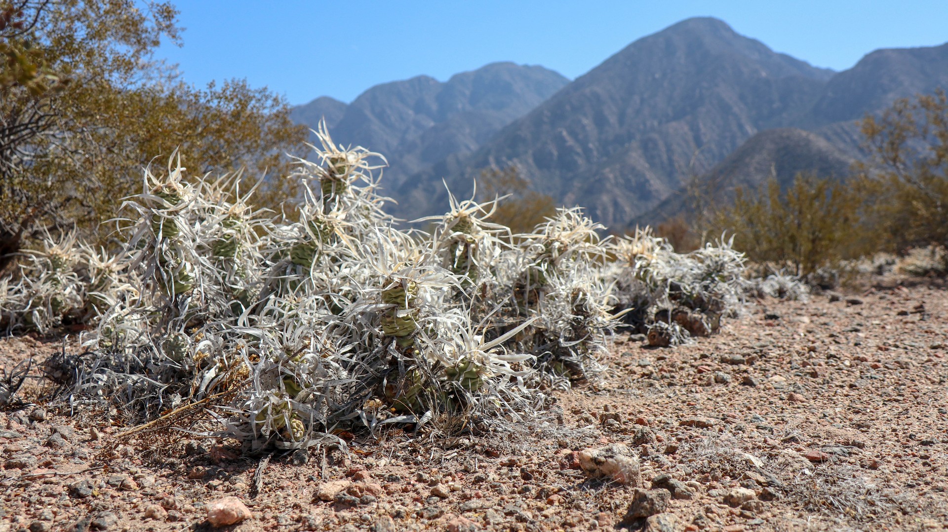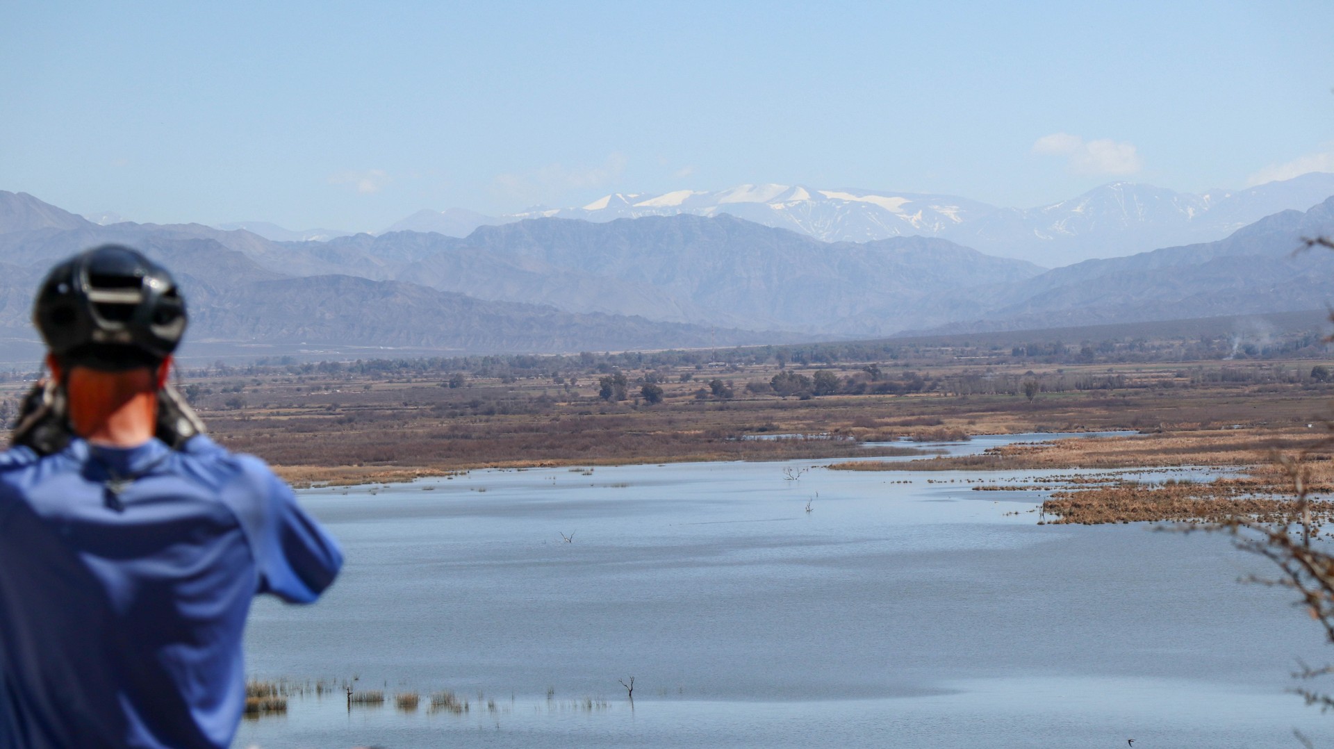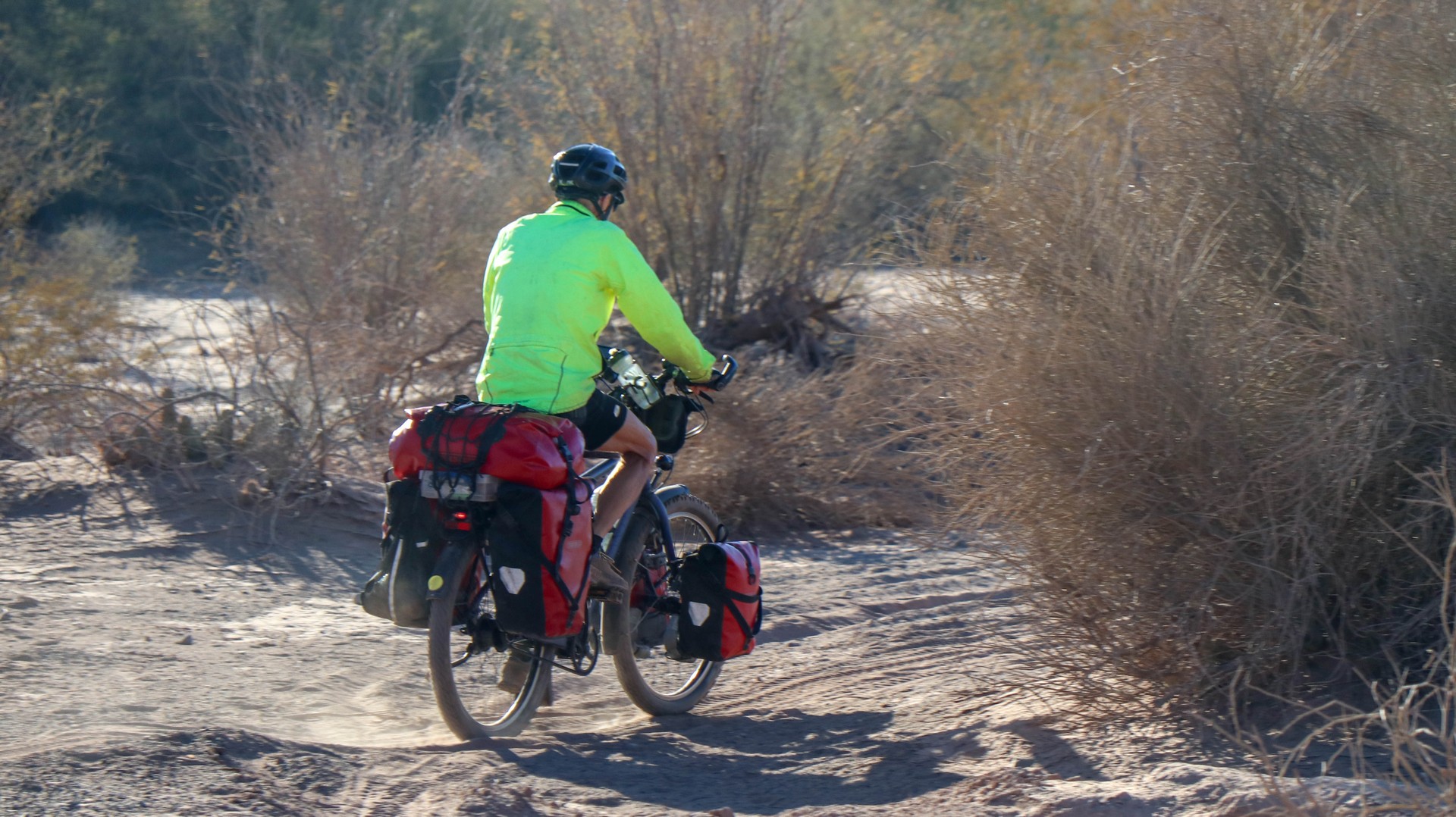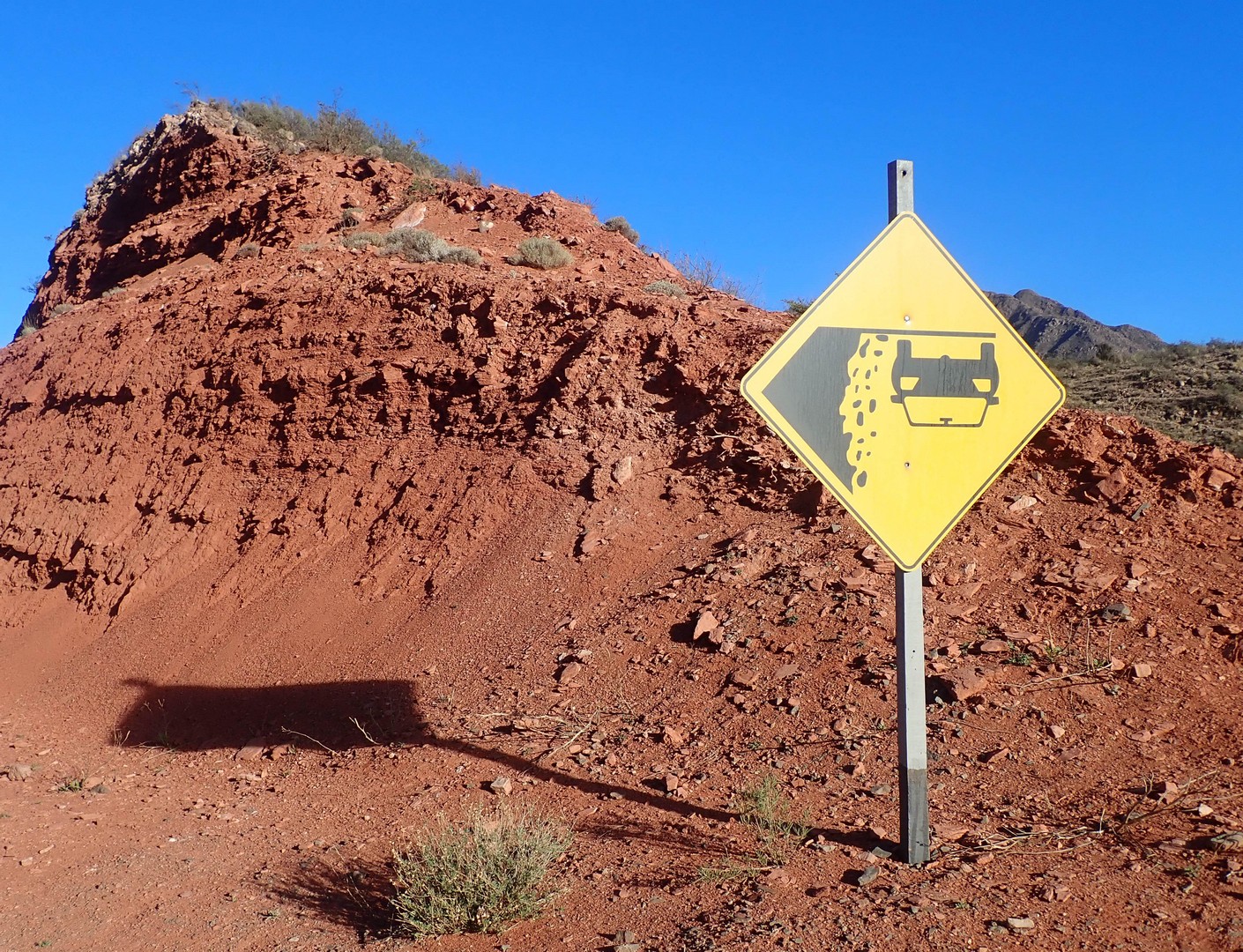 Joining Route 40, passing a police control where hardly anybody is passing. Whole day steadily climbing with calve biting, nasty short down and uphill stretches, to pass the countless number of little rivers that cross the road. Since there is no water most of the year, they do not bother to build bridges, the road descends, you cross the stream and the road goes up. We are biking through the Bermejo Valley and it is bare, except for thorny bushes and few cacti. There is a very strong headwind, called Zona wind and it carries a lot of dust, as it often seems to do. We wear our Buffs over our faces against the dust and take the lead in turns, every 2 and 3 km to create wind shadow for the other. Wondering who does the 3 km? Frank of course, he is feeling much better than when we were biking at +3,000 m.