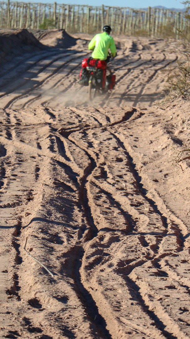 For next morning I planned a way out of the village and we end up on a road with deep dust. We got our portion of gravel today. Raw nature is been stripped to be replaced by grapes.