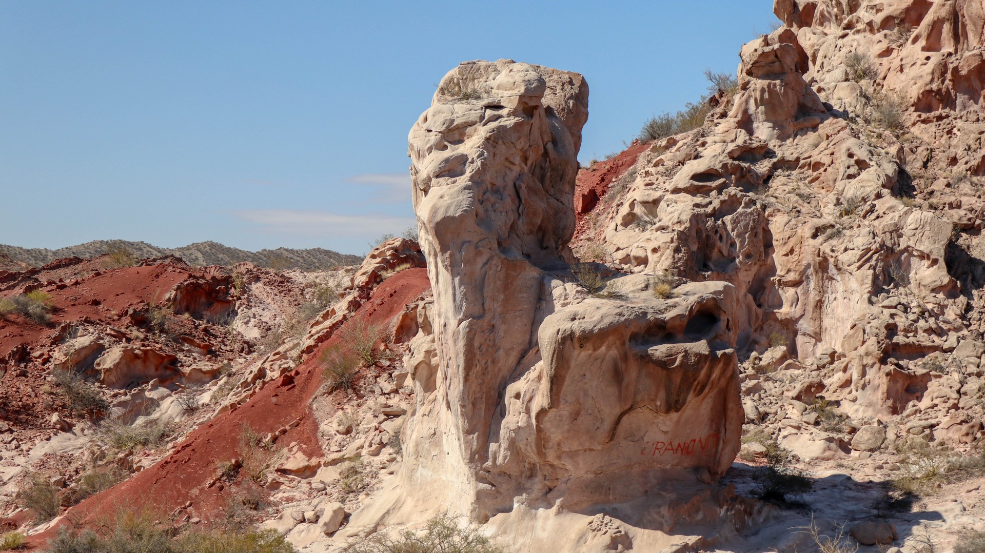 At Alto Huaco we follow the old road RP491, passing “El Sillon del Gigante”. I don’t think it looks like a chair but more like a ghost head. A beautiful steep climb gives us a breath-taking view of colored mountains. We enter a valley that looks like a caldera. An outer world feeling which disappears when we leave the caldera. Were the giants watching us from around the corners?
