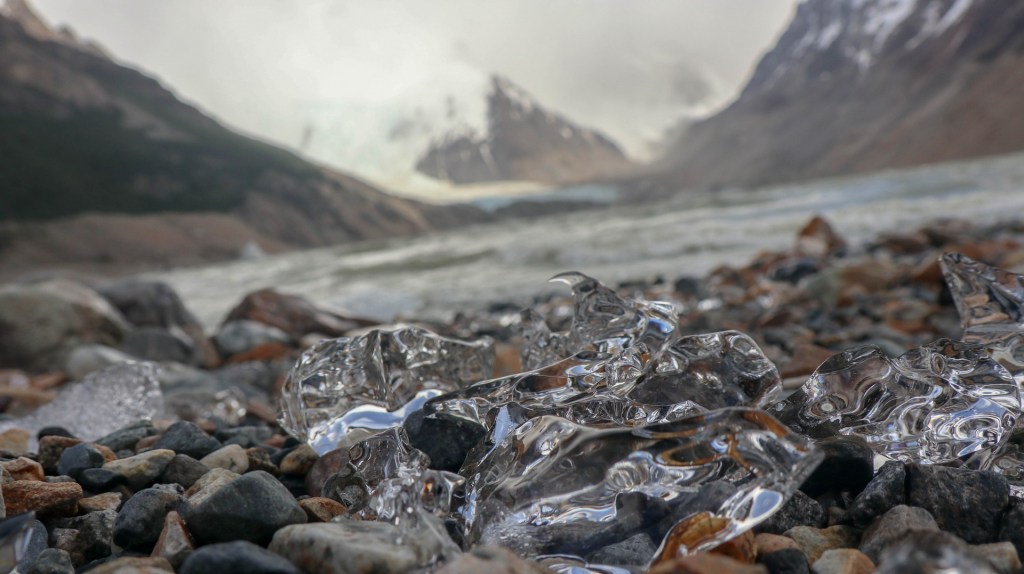 Smooth hike to the glacier lake with a few moderate hills. Bit of wind, more overcast than yesterday. Also here the impact of a few forest fires. Wind is picking up.