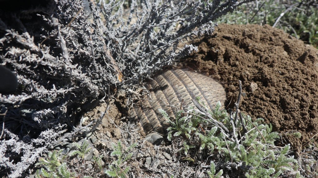 Something you see when you are slowly moving forward. Armadillo hiding from you.