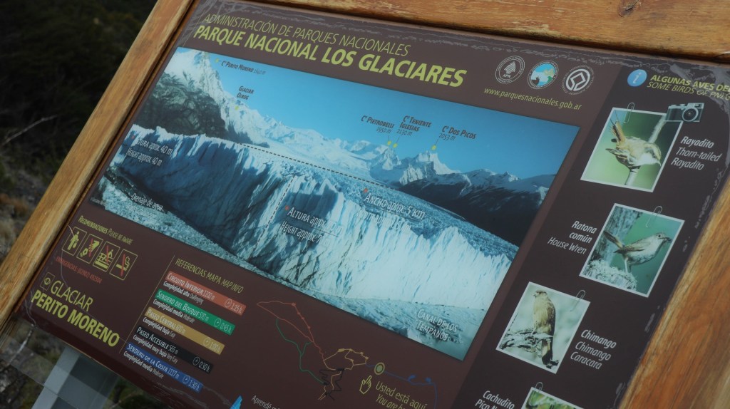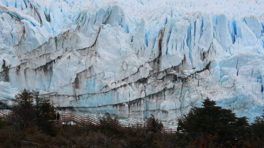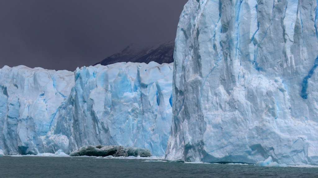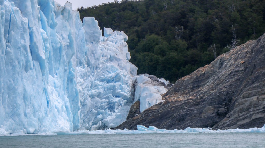 Perito Moreno is one of the most active Glaciers, shedding 2 meters of ice at the front per day, but also gaining the same amount. 250 km2 of ice, 30 km in length, is one of 48 glaciers fed by the Southern Patagonian Ice Field located in the Andes system shared with Chile. This ice field is the world’s third largest reserve of fresh water.