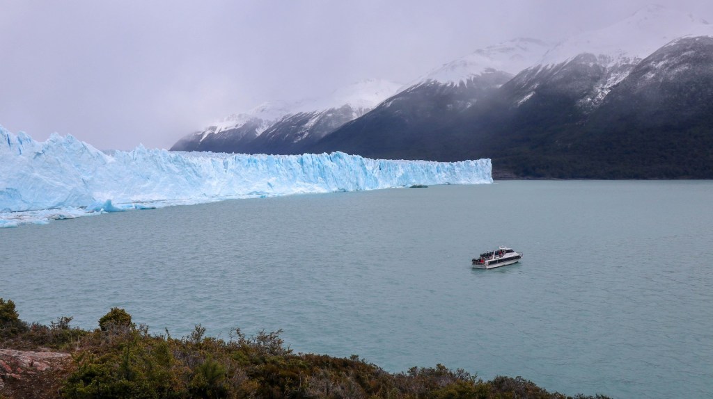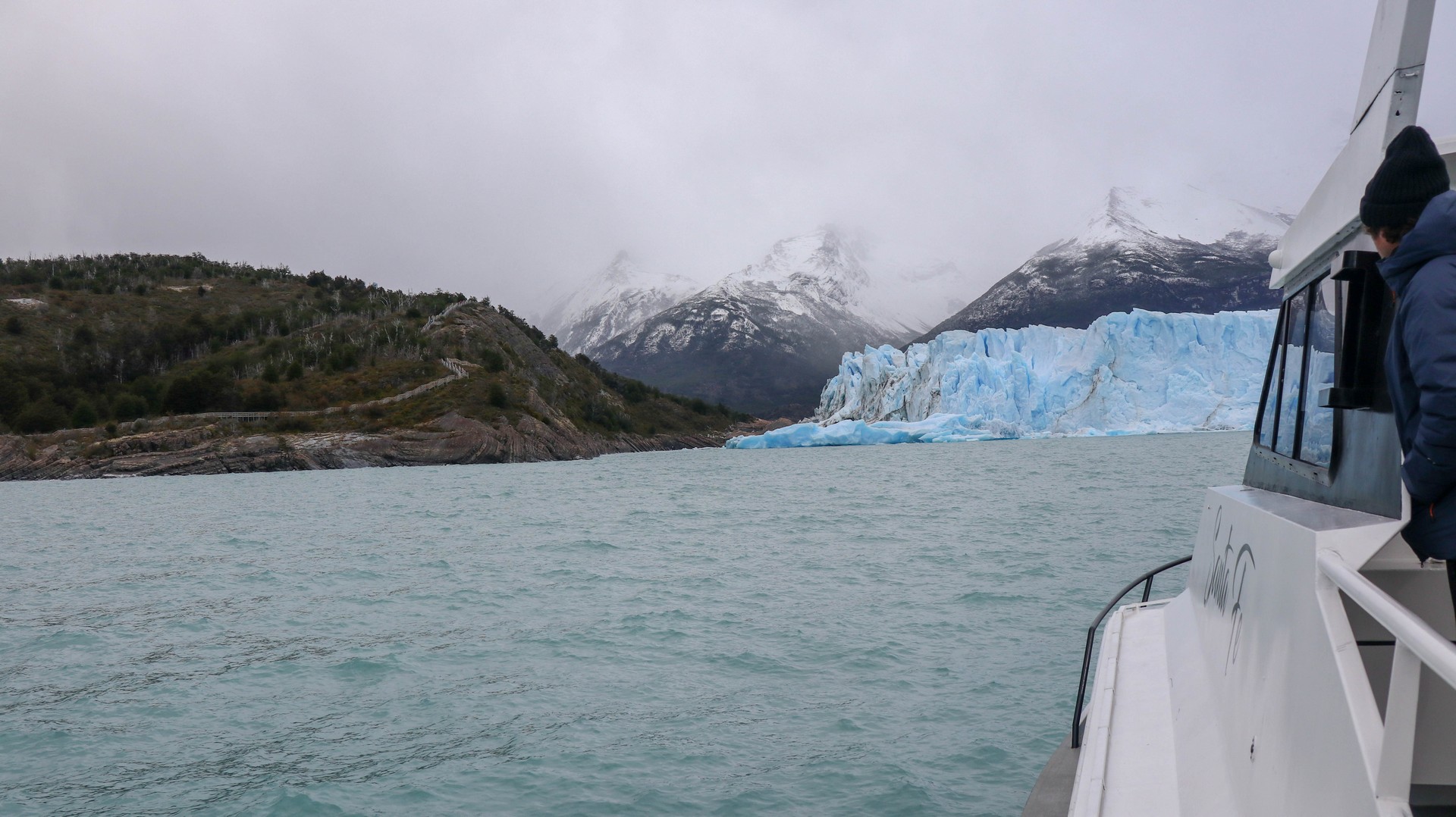 My head spins sitting in the warmth of the bus and seeing the landscape gliding past. I don’t feel anything of the harsh conditions and wonder if this was the good decision to take. Of course it saved us pushing and struggling tomorrow and a night in an expensive hotel or being exposed to the elements in the tent, but now we are taking a bus back South while we wanted to bike. The fact of being with more than only the two of us impacts decisions. Arriving in El Calafate we go to hostal De Las Manos together. As it has a dorm but also private rooms and a small kitchen we are happy with what it offers. Cook a quick meal and ready for bed. Next day we discover the village and arrange transport to Perito Moreno glacier. We hope we can still arrange a boat trip when we are there and maybe even a glacier hike.