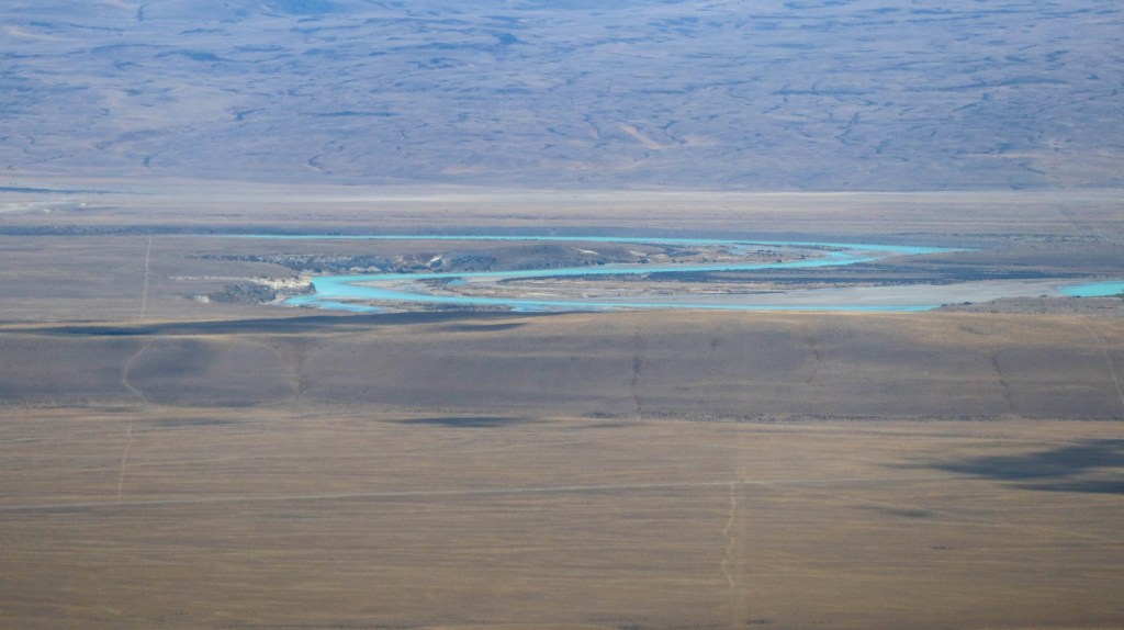 Leaving El Calafate with a slight side wind, blue sky and great asphalt.