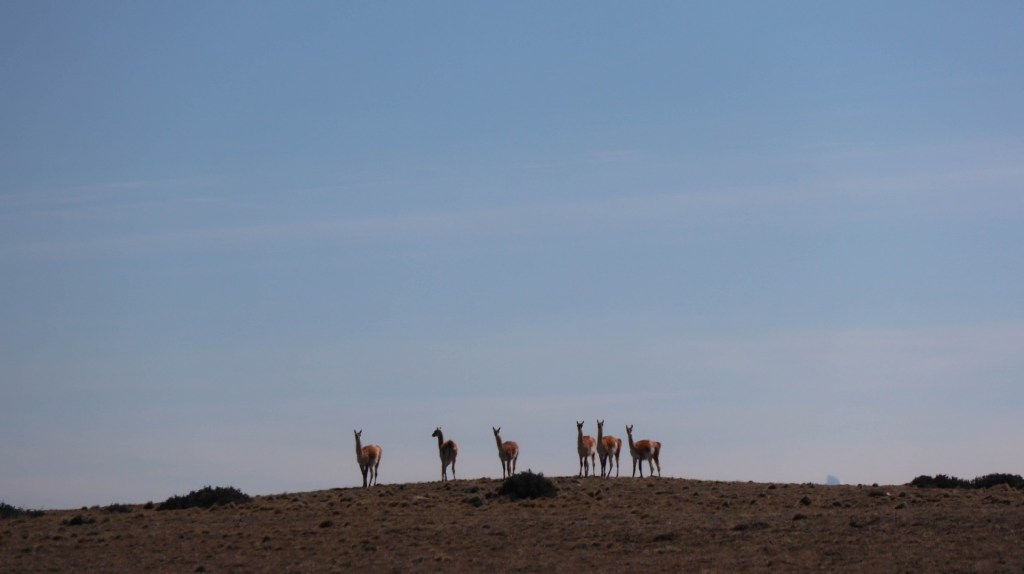 Also here we are in awe to see that man has claimed all the land. Kilometer after kilometer land is fenced off. Not seeing a lot of farm life as the ground is barren. But the fences are so high that guanacos are caught in them. Must be a horrible death hanging up side down and not being able to free yourself. But then we see one that is still moving its head. Cut the wires and keep it down as we want to see if we can take it to a vet to get the barbwire removed from it’s belly. Trying waving a car down, the first one takes off when he sees a guanaco is involved. The next one turns around and comes to check out what is happening. But when he sees the blood and when he understands that we would like to take the guanaco to the vet he says he can’t do anything. No need to take a wounded animal anywhere. When I suggest he could kill it when it would be too severely hurt, he escapes in a hurry pass, after suggesting we could do it as nobody would be offended.