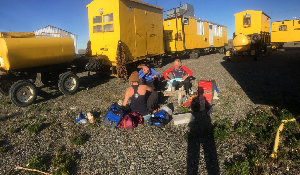 AGVP facilitates road-workers to rest at night and a shelter for their machines. There is one person responsible per location, working 14 days on and off. How much more welcoming Damian is compared to the guy at the previous intersection. Here they even offer you to sleep in one of their old lodgings, for free. You could even shower and use a toilet inside. He is happy with a small tip. Only disadvantage is that in the middle of nowhere they only have electricity (and WIFI!) through a diesel generator, producing a lot of noise. Fun evening together with Kyla who lives in Alaska and is used to the remote life. Lives in a cabin without running water. Sharing road info, fun to see there is no difference in generations once you are on the road with your bike. What an end of this week.